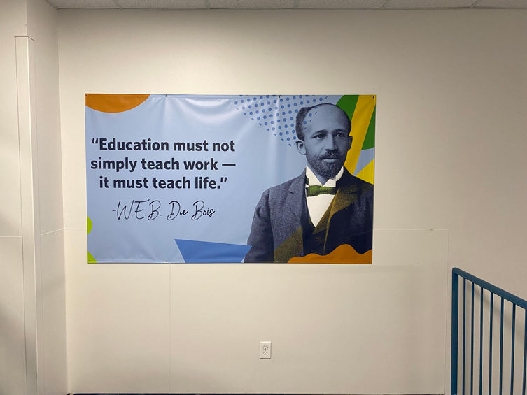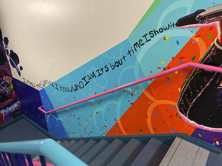 One of my greatest creations to date is a photorealistic mural of legendary Black icons, wrapping top to bottom in a middle school stairwell. The school wanted to embrace the theme of "passing the torch," proposing the question, “What will be your legacy?” The pairing of these figures highlights changemakers of color who paved the way for future generations to leave their mark on history and culture. The mural’s purpose is to educate students on the character and accomplishments of these trailblazers, inspiring them to chase their own dreams. The icons were intentionally made larger than life, yet at eye level, to remind students that greatness is always within reach. As you walk up the first set of steps you are met with a colorful and abundant display of love affirmations to complement the quote in the middle of the stairwell left by Principal Dr. Darryl White, “If nobody’s told you they love you today, we do.” A vibrant whirlwind of confetti guides you up the second stairwell to reinforce the notion that we are here to celebrate each other and our accomplishments. A playful and powerful line of text floats amongst the clouds as the chord to Beyonce's microphone. Her lyrics read “ I know the world, and I know who I am, it’s bout’ time I show it.” As you walk closer, the deep blue hues of Obama's suit jacket reveal a subtle statement repetitiously embedded within the shading to represent each youth’s voice; YES WE CAN. A final message for the students left by myself hidden under the glare of light on the face of his watch: “Good things take time, great things take love, timeless things take soul.”